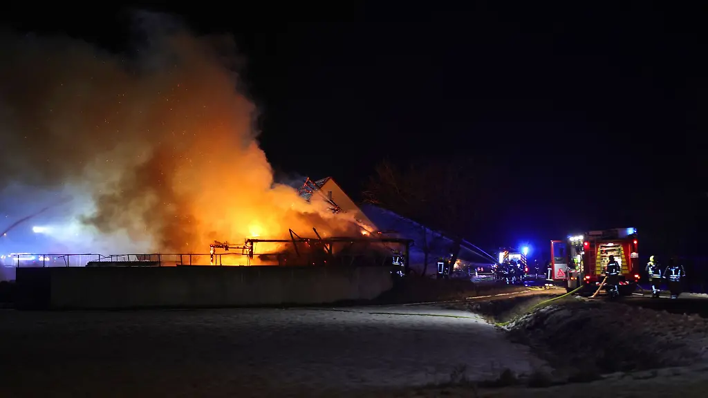 Demnach stand das Gebäude beim Eintreffen der Einsatzkräfte vollständig in Brand. Zahlreiche örtliche Feuerwehren waren im Einsatz. In der Scheune lagerten Stroh und landwirtschaftliche Geräte, was die Löscharbeiten laut Polizei erschwerte.