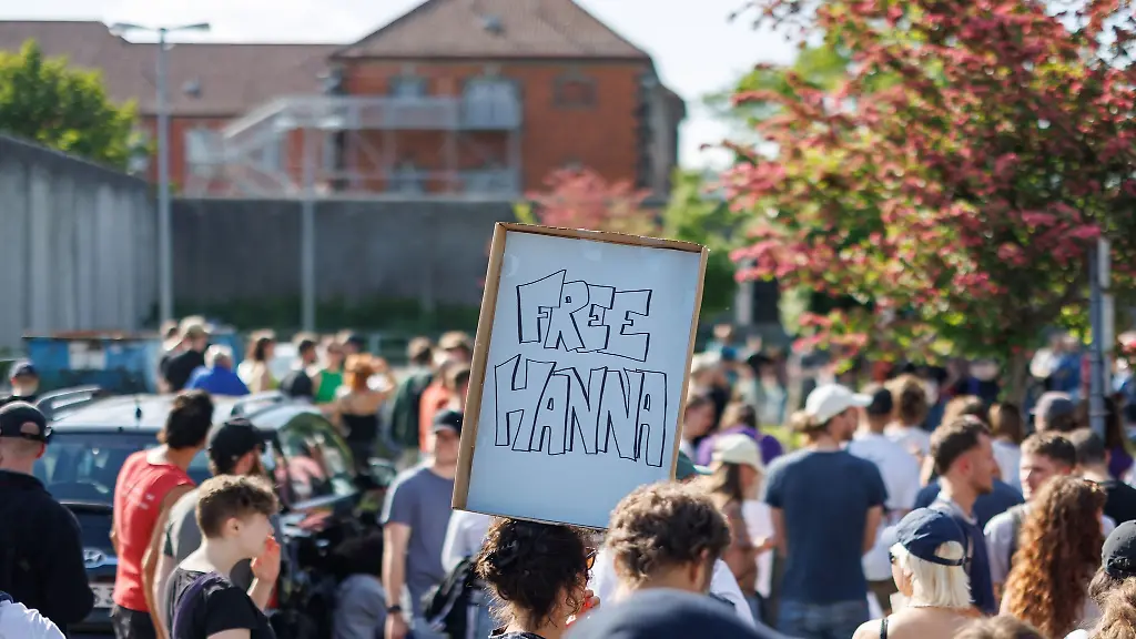 Nürnberg (dpa/lby) - Vor dem Nürnberger Gefängnis haben mehrere Unterstützer einer mutmaßlichen Linksextremistin ihre Solidarität mit der Frau bekundet. Am Freitag hielten sie unter anderem Plakate mit der Aufschrift "Free Hanna" in die Höhe.