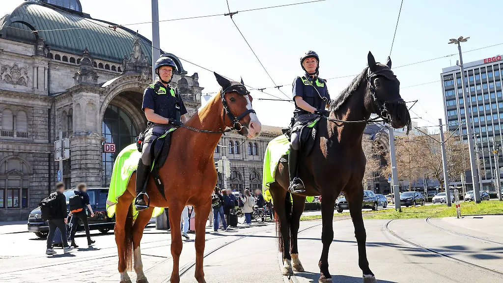 Nürnberg (dpa/lby) - Wenn Remus und Quickly am Nürnberger Hauptbahnhof Streife laufen, bekommen sie viel Aufmerksamkeit. Immer wieder bleiben Leute stehen und zücken ihre Handys, um Fotos zu machen: Zwei Pferde mitten in der Stadt, das ist schon ungewöhnlich. Doch es gibt auch Menschen, die die Flucht ergreifen, sobald sie die beiden großen Tiere erblicken. Denn Remus und Quickly sind Polizeipferde.