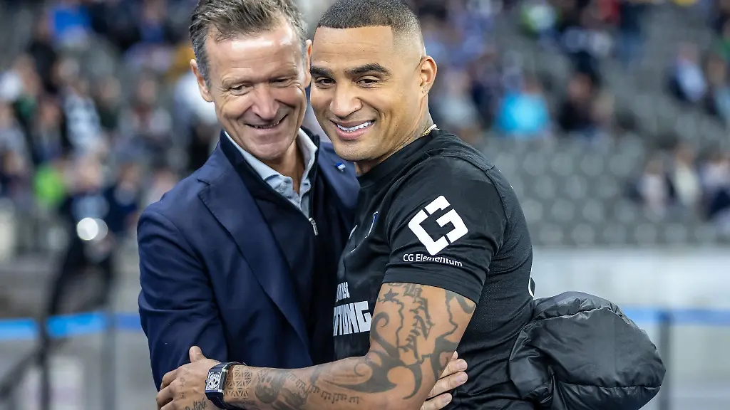 Als Boateng vor der prall gefüllten Ostkurve stand, wischte er sich Tränen aus den Augen. Hertha-Geschäftsführer Tom Herrich verabschiedete den ehemaligen Offensivspieler mit einer langen Umarmung. "Ich habe gesagt, ich werde nicht emotional. Also lasst mich nicht weinen. Ha, Ho, He für immer", rief Boateng und startete eine La-Ola-Welle.