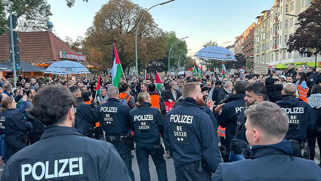 Etwas später wurden die Polizisten noch einmal aktiv: "Am Kottbusser Damm haben unsere Einsatzkräfte den Aufzug angehalten, um dem Verantwortlichen sowie auch den Teilnehmerinnen und Teilnehmern über unsere Lautsprecherwagen mitzuteilen, dass israelfeindliche Ausrufe nicht länger geduldet werden."