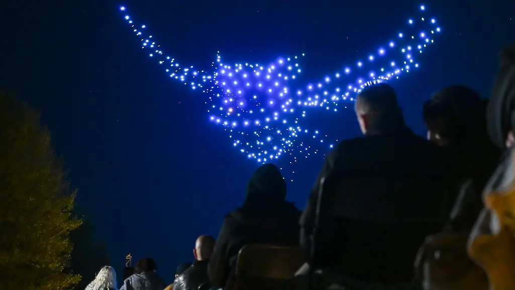 Berlin (dpa/bb) - Hunderte Drohnen tanzen im Berliner Nachthimmel. In den Gärten der Welt ist in den nächsten beiden Tagen noch eine besondere Leuchtshow zu sehen. Begleitet von klassischer Musik werden mit den schwebenden Drohnen Bilder gemalt.
