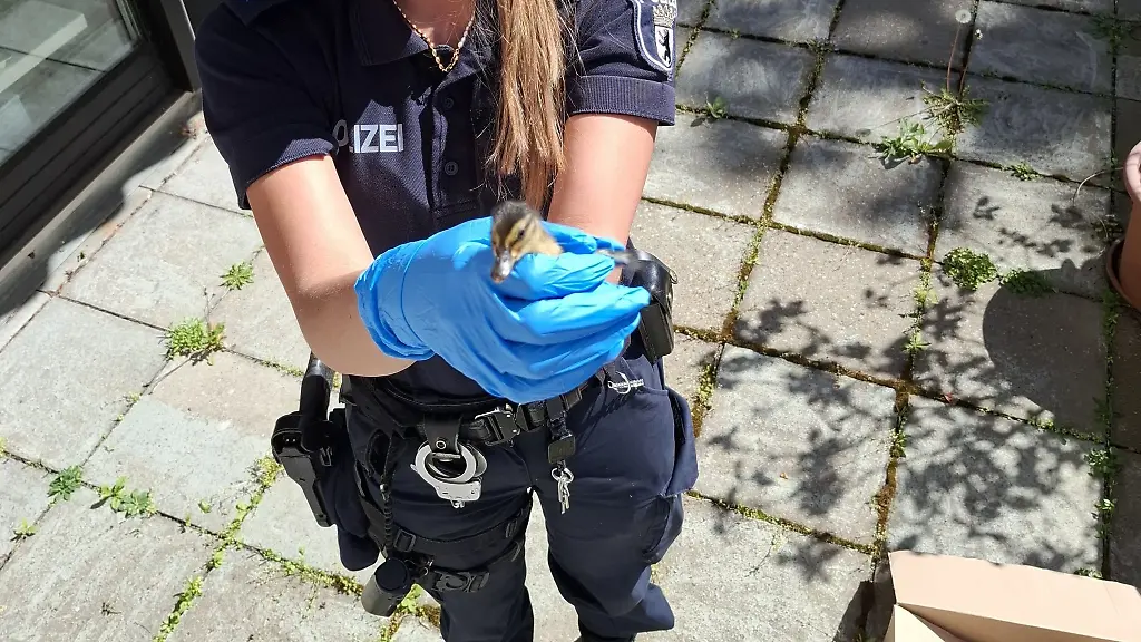 Berlin (dpa/bb) - Als Retter von Entenküken und kleinen Katzen hat sich die Berliner Polizei präsentiert. Zwei Küken aus einer Entenfamilie wurden in Spandau von Polizisten von einem Balkon geholt und "wieder sicher zu ihrer Entenmutter gebracht", wie die Polizei bei Facebook schrieb. Sie stellte ein Foto einer Polizistin mit Handschuhen und Küken dazu. "Happy EnT", hieß es zum Schluss.