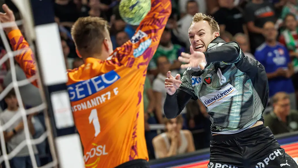 Hatten die Berliner Mitte Juni im Halbfinale des Final Four Nantes noch mit 37:27 zerlegt, fanden sie dieses Mal nur schwer ins Spiel. Welthandballer Gidsel vergab gleich seine ersten beiden freien Würfe und sein Team lag schnell 0:3 zurück. Mit guter Defensive fingen sie sich aber und konnten dank schneller Gegenstöße mit einem 4:0-Lauf antworten.