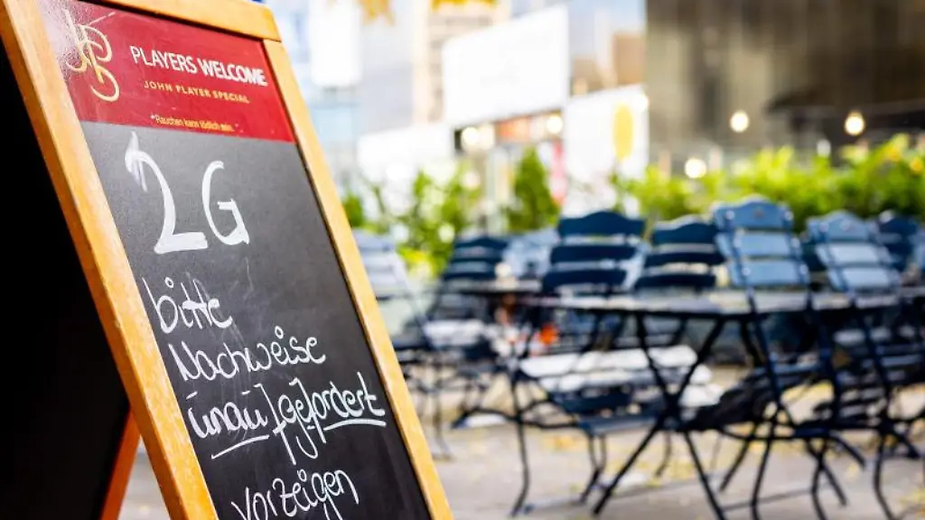 Ein-Aufsteller-auf-der-Terrasse-eines-Restaurants-weist-auf-die-2G-Regel-hin