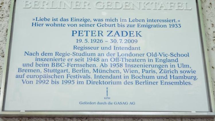 Berlin (dpa/bb) - Der legendäre Theaterregisseur Peter Zadek (1926-2009) hat eine Gedenktafel in Berlin-Wilmersdorf bekommen. Zadek war Intendant am Schauspielhaus Bochum, am Deutschen Schauspielhaus in Hamburg und von 1992 bis 1995 Mitglied des Direktoriums des Berliner Ensembles. Die Gedenktafel findet sich in der Offenbacher Straße. Dort lebte Zadek von seiner Geburt bis 1933, als er mit seinen Eltern nach England emigrierte. 1958 kehrte er nach Deutschland zurück. Zur Enthüllungszeremonie am Montag kamen die Schriftstellerin und letzte Lebensgefährtin Zadeks, Elisabeth Plessen, die Schauspielerin Angela Winkler und Michelle Zadek, Tochter des Regisseurs.