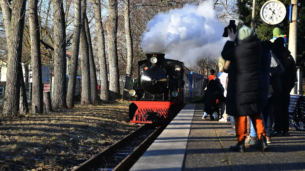 Berlin (dpa/bb) - Die Parkeisenbahn Wuhlheide ist am zweiten Weihnachtstag trotz Winterpause zu etlichen Sonderfahrten gestartet. Im Südosten Berlins hat das inzwischen Tradition. In diesem Jahr war der Zug nach Angaben der Berliner Parkeisenbahn gGmbH allerdings erstmals mit einer historischen Dampflok an der Spitze im Volkspark Wuhlheide in Köpenick unterwegs.