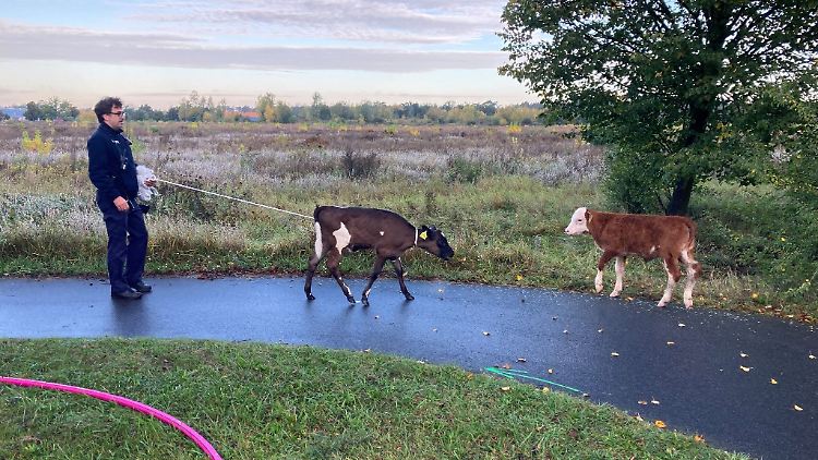 Einzelne Tiere konnten die Beamten auch festhalten, aber die Kälber, die in der Überzahl waren, behielten zunächst die Überhand. Die restlichen Kälber wurden von den zwei Streifenpolizisten auf einen Fahrradweg gedrängt. Dann nahmen die Beamten Kontakt mit den Besitzern auf, die die Tiere erfolgreich verluden.
