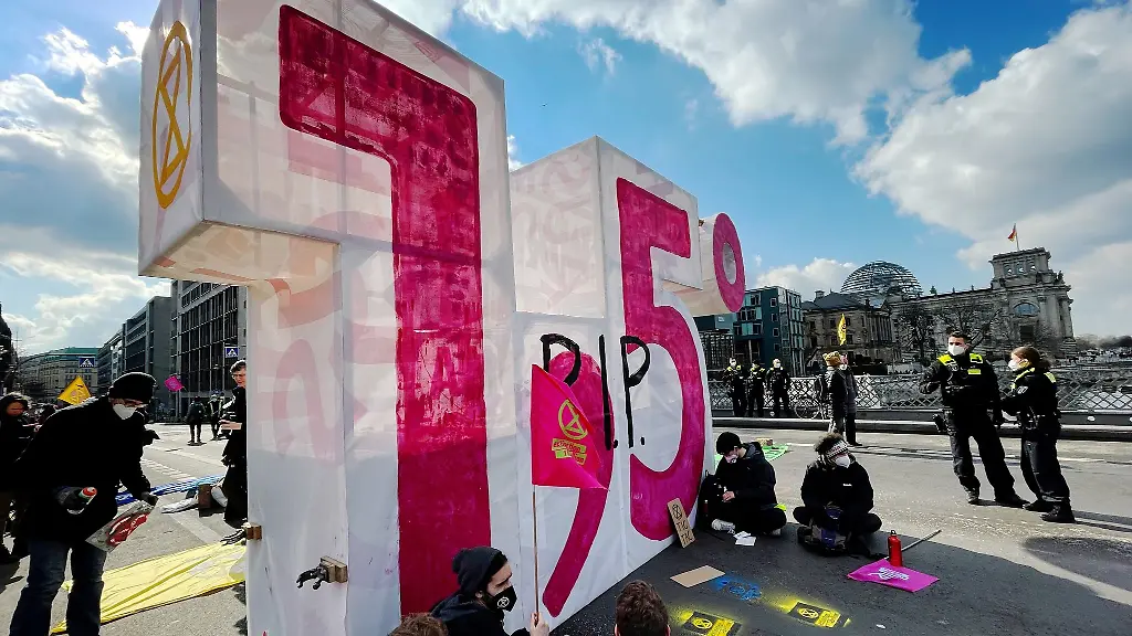 Die Initiative teilte dazu mit, Anlass der Aktion unter dem Motto "1,5 Grad ist tot! Die Krisen sind längst da" sei der neue Weltklimabericht. Die Zahl 1,5 steht für das Ziel, den menschengemachten globalen Temperaturanstieg durch den Treibhauseffekt auf 1,5 Grad Celsius zu begrenzen. Die Gruppe wolle die fehlenden Maßnahmen der derzeitigen Politik aufzeigen - die Schwelle einer Erderwärmung von 1,5 Grad Celsius werde aller Voraussicht nach überschritten, hieß es.