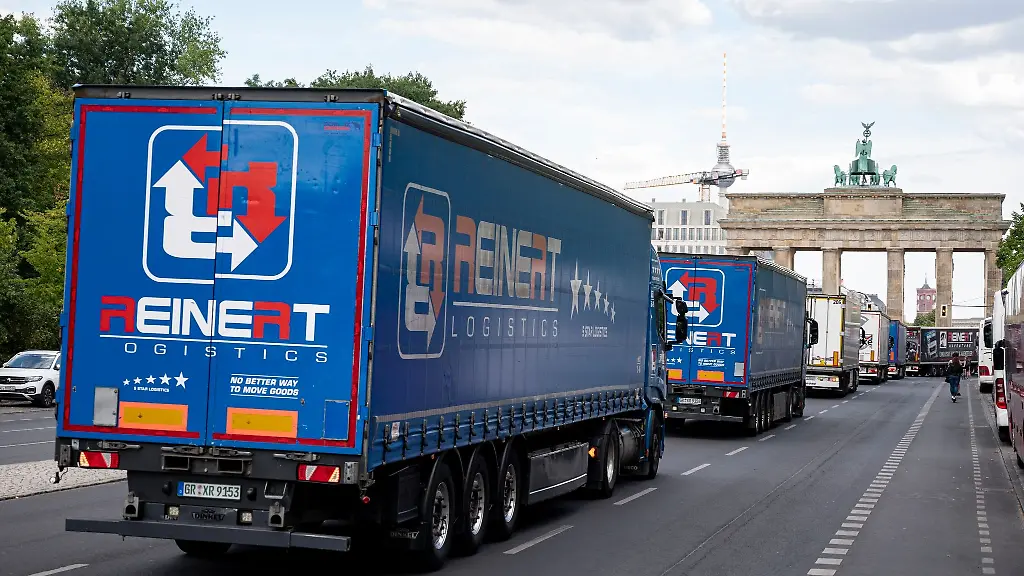 Berlin (dpa/bb) - Einige hundert Lkw-Fahrer haben mit einer Sternfahrt durch Berlin gegen die hohen Gas- und Energiepreise demonstriert. Aus allen vier Himmelsrichtungen kommend fuhren die Lastwagen in langen Schlangen von jeweils 50 bis 70 Fahrzeugen am Freitagnachmittag durch die Innenstadt und das Regierungsviertel. Es ging vorbei am Brandenburger Tor, wo sie zum Teil nur noch ganz langsam rollten. Der Titel der Demonstration lautete: "Die Explosion bei den LNG-Preisen. Pleitewellen der Transportunternehmen." Es gab Verkehrsbehinderungen und Sperrungen.