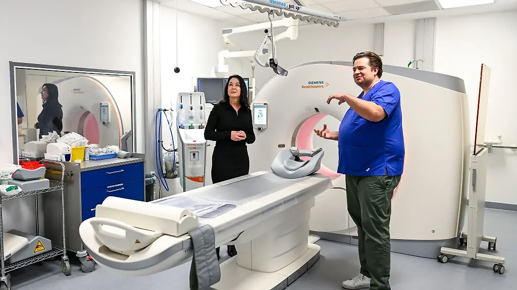 Auch das Klinikum Ernst von Bergmann in Potsdam macht ein Millionendefizit. Wegen des großen Sanierungsbedarfs wird zudem ein Neubau erwogen. Geschäftsführer Tomislav Gmajnic sagte, die Planung dafür könne frühestens 2026 beginnen. Nach einer bisherigen Studie könne ein Neubau mit 1.000 Betten rund 1,5 Milliarden Euro kosten. Die Finanzierung ist ungeklärt. "Wir können als Land keinen Neubau finanzieren, das ist auch gesetzlich nicht vorgesehen", sagte Ministerin Müller, die sich unter anderem ein neues Computertomographie-Gerät im Klinikum Ernst von Bergmann ansah.