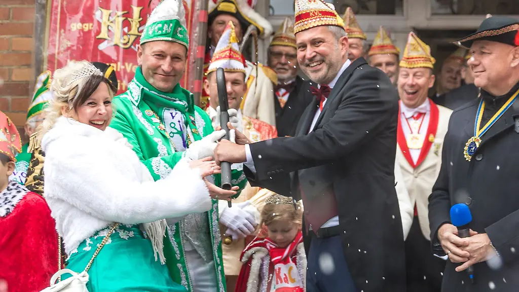 Cottbus (dpa/bb) - Die Karnevalssession in Brandenburg ist eröffnet: In der ostdeutschen Karnevalshochburg Cottbus haben die Närrinnen und Narren das Rathaus erobert - zumindest symbolisch. Oberbürgermeister Tobias Schick (SPD) übergab dafür den Cottbuser Narrenweibern den Rathausschlüssel.