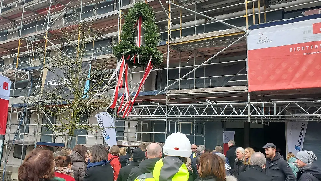 Potsdam (dpa/bb) - Der Neubau des Zentrums für Lehrerausbildung an der Universität Potsdam ist einen wichtigen Schritt vorangekommen. Nach weniger als einem Jahr seit der Grundsteinlegung feierten Landesregierung und Uni das Richtfest.