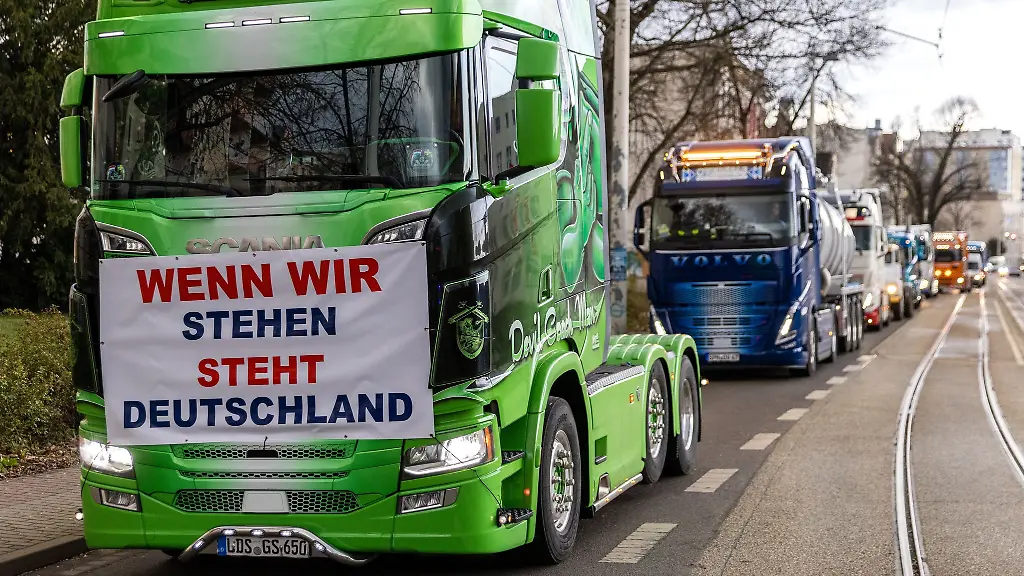 "Wenn wir stehen, steht Deutschland" stand auf einem Transparent in Cottbus. Die Logistikbranche verwies damit darauf, dass es ohne Lkw etwa keine Lieferungen an Supermärkte gibt. Wegen der Lkw-Demo mussten sich Fahrgäste in Bussen und Straßenbahnen in Cottbus auf Beeinträchtigungen einstellen.