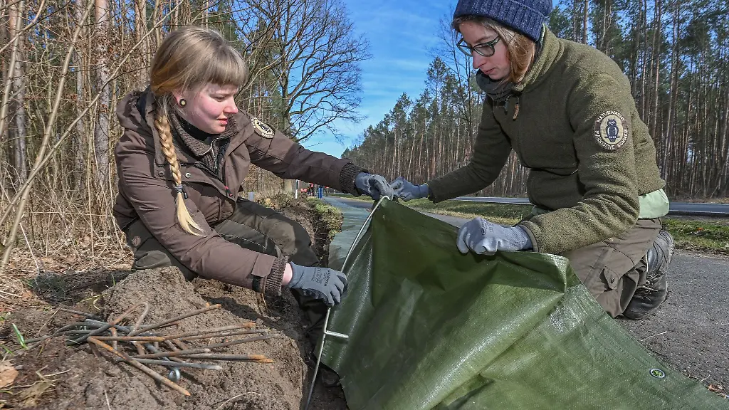Buckow/Potsdam (dpa/bb) - Rangerin Lea Potrafke ist in den kommenden Wochen in der Märkischen Schweiz bei Buckow (Märkisch-Oderland) auf Rettungsmission. Die 23-Jährige ist eine von zahlreichen Naturschützerinnen und Naturschützern, die dafür sorgen, dass Molche, Kröten, Frösche und ihre Artgenossen bei ihrer Frühjahrswanderung zu den Laichplätzen nicht ein vorzeitiges Ende durch den Straßenverkehr finden. Landesweit stellt die Naturwacht mit freiwillig Helfenden in diesen Tagen an vielen Straßen 30 Zentimeter hohe Krötenzäune auf, denn mit milderen Temperaturen werden die Tiere langsam wieder aktiv. Die Hilfe für die Amphibien ist mehr als notwendig, denn Zahlen der Naturwacht zeigen ein alarmierendes Bild. Die Naturschützer beklagen einen deutlichen Rückgang von Kröten, Fröschen, Molchen und ihrer Artgenossen.