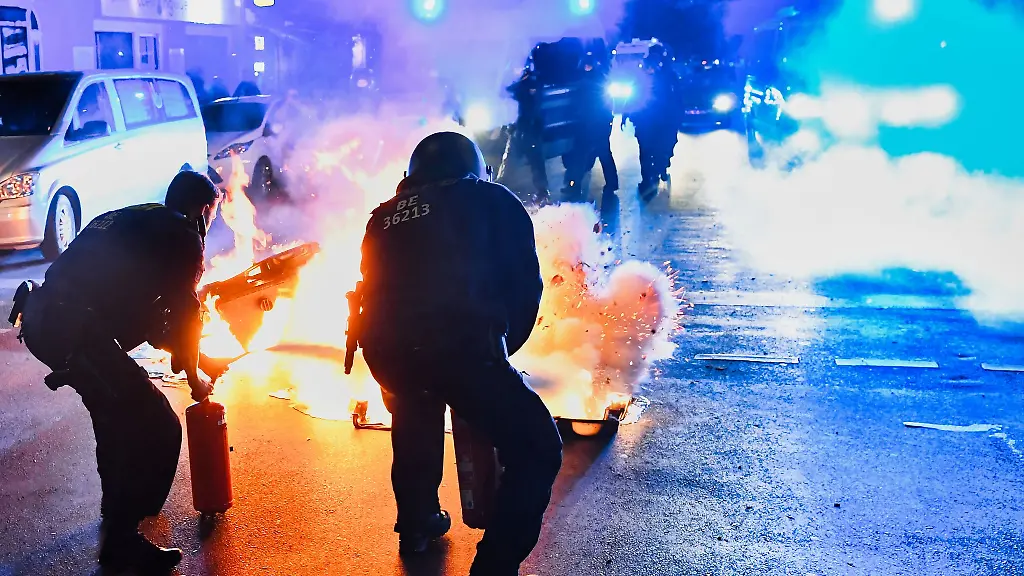 Später wurden Einsatzkräfte den Angaben zufolge aus einer etwa 200-köpfigen Gruppe in der Sonnenallee Höhe Reuterstraße mit Steinen und Flaschen beworfen, zwei Polizisten wurden verletzt. Die Polizei nahm mehrere Menschen fest. Zudem mussten Einsatzkräfte mehrere Brände an einem Stromkasten und Müllcontainern löschen.