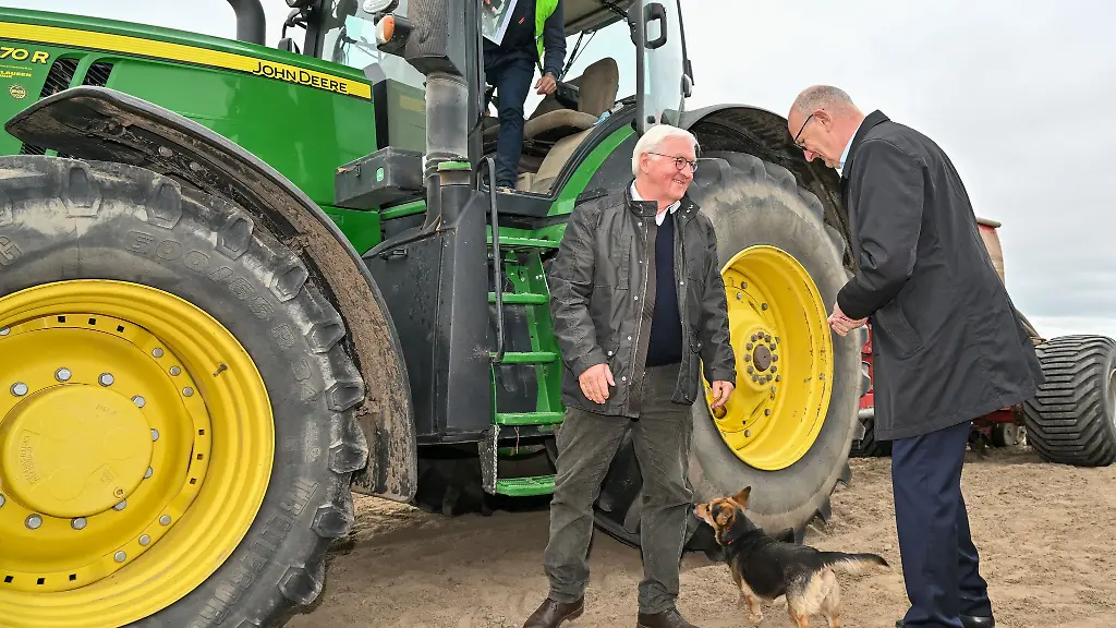 Agrarforscher präsentierten Steinmeier solarbetriebene Feldroboter und andere Prototypen. Sie sollen helfen, klimaschädliche CO2-Emissionen auf dem Acker zu verringern und die Artenvielfalt zu verbessern. Der Bundespräsident plauderte mit einem Landwirt auf einem Traktor, steuerte bei leichtem Nieselregen einen Roboter zur Unkrautbekämpfung. Forscherinnen und Forscher des Leibniz-Zentrums in Müncheberg schilderten, der Anbau von Hülsenfrüchten werde angesichts zunehmenden Fleischverzichts für Landwirte attraktiver und funktioniere auch auf den schlechteren Böden in Brandenburg.