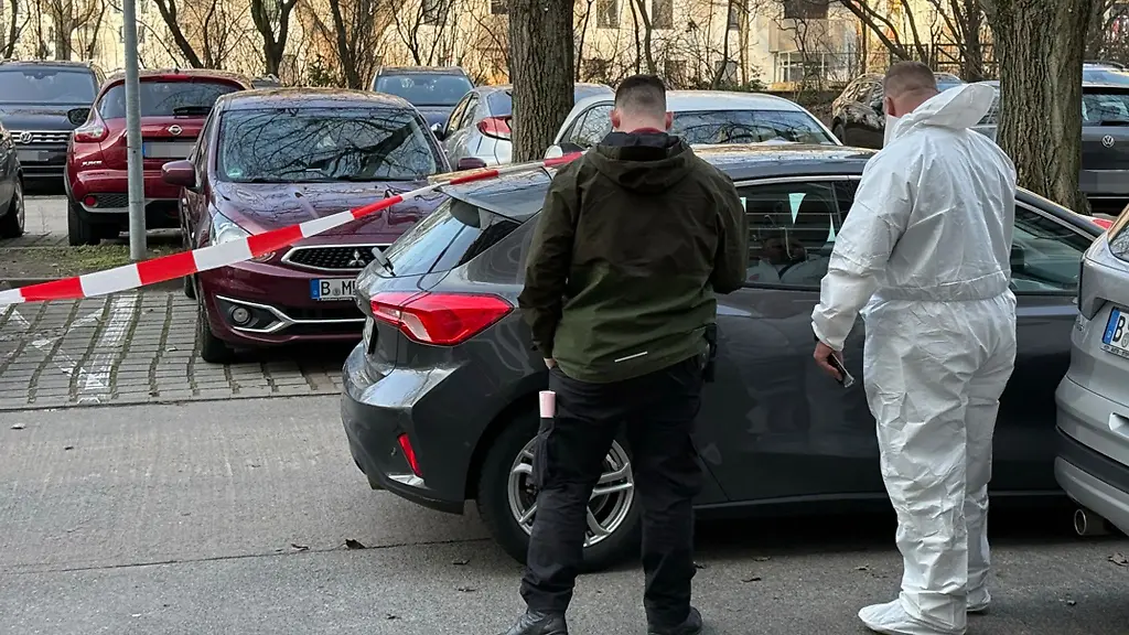 Nach-einer-Gewalttat-in-Berlin-Marzahn-untersuchen-Beamte-der-Spurensicherung-das-Auto-des-Opfers
