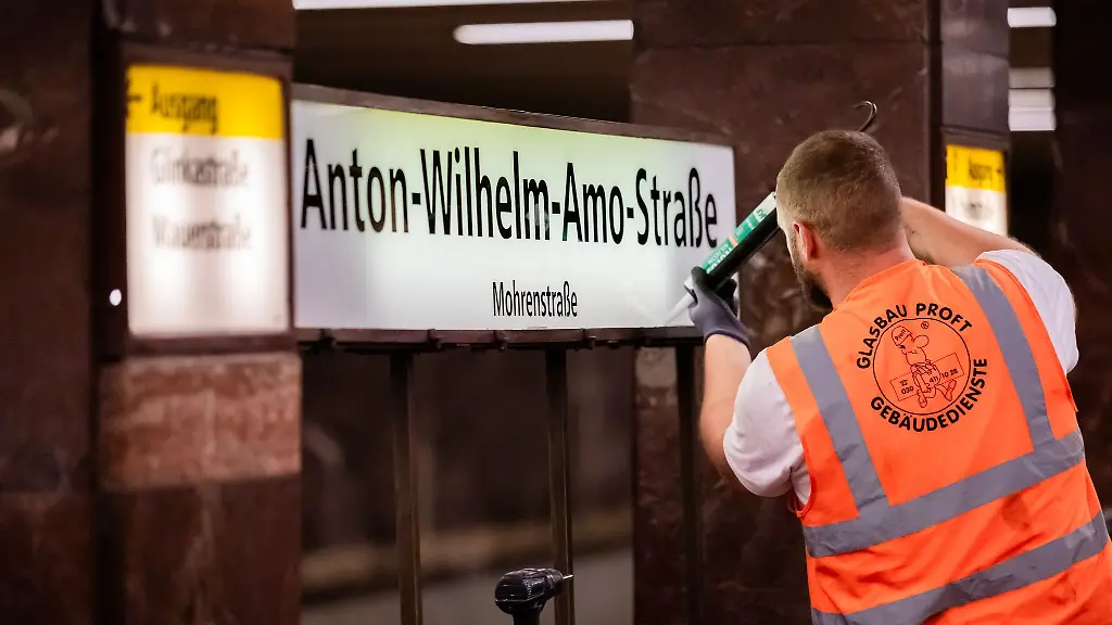 Die frühere Mohrenstraße wurde zum Wochenende umbenannt und heißt jetzt Anton-Wilhelm-Amo-Straße. In der Nacht auf Mittwoch erhielt auch die U-Bahn-Station den neuen Namen.