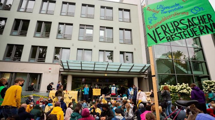 Mittags setzten sich etwa 100 Demonstranten vor das Landwirtschaftsministerium in der Wilhelmstraße. Die "Umweltzerstörung und Klimazerstörung der Industrie kann so nicht weitergehen", schrieb das Bündnis im Internet.
