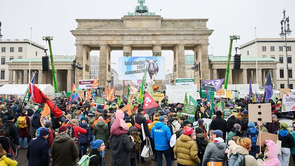 Traktoren rollen vor das Brandenburger Tor: Umweltschützer und manche Bauern demonstrieren anlässlich der Grünen Woche gemeinsam.