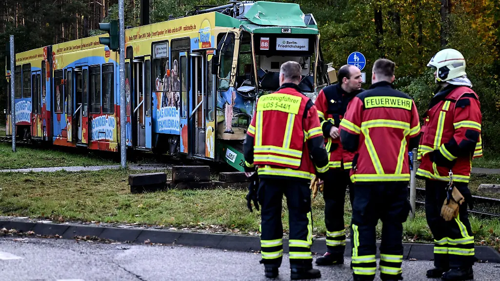 Zwei Straßenbahnen fahren in einem Ort nahe Berlin aufeinander zu und stoßen zusammen. Eine Frau muss von der Feuerwehr befreit werden.