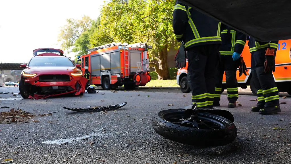 Ein junger Motorradfahrer stößt auf der Helgoländer Allee mit einem Auto zusammen. Sein Motorrad wird auf den Gehweg geschleudert. Der 19-Jährige kommt ins Krankenhaus.