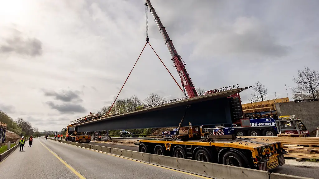 Reisende im nördlichen Schleswig-Holstein mussten seit Freitagabend auf der Trasse wegen der Sperrung Umleitungen nehmen. Grund für die Sperrung war der Einbau von Stahlträgern für eine neue Brücke. Diese sind jeweils 38 Meter lang und wiegen 50 Tonnen. Die alte Spannbetonbrücke war 1971 gebaut worden und hatte so große Schäden, dass die notwendige Tragfähigkeit nicht mehr gegeben war. Sie wurde im Juni 2023 abgerissen. Die neue Brücke soll im vierten Quartal 2024 fertig werden.