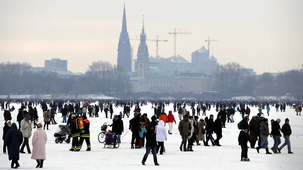 Angesichts der prognostizierten weiteren klimabedingten Erwärmung sinke die Wahrscheinlichkeit für wochenlange Frostperioden, wie sie für das notwendige Eiswachstum zwingend erforderlich seien, betonte der Sprecher. Sogenannte Eiswinter wird es in Hamburg seltener geben. Damit sind laut Behörde Tage gemeint, an denen die Höchsttemperatur bei unter null Grad liegt. Angesichts des Klimawandels sinkt laut Behörde die Wahrscheinlichkeit für wochenlange Frostperioden und damit auch die Chance auf eine zugefrorene Alster, die von vielen Menschen betreten werden darf.