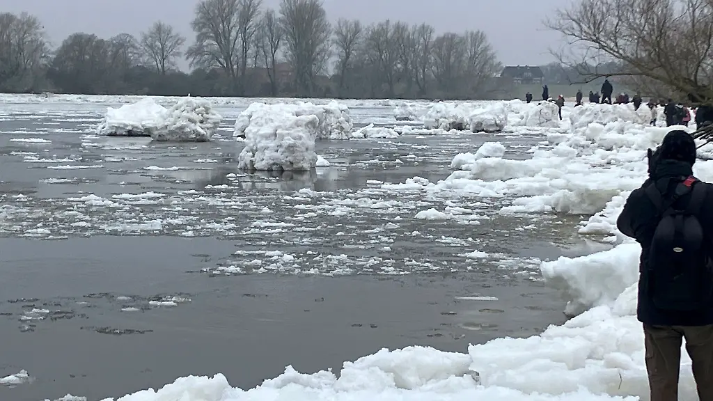 Das Wetter hat auch schöne Seiten: Warm eingemummelt, kann man ein ungewöhnliches Naturschauspiel beobachten: Die Eisberge auf der Elbe bei Geesthacht ziehen weiter viele Neugierige an. Seit Tagen arbeitet die Eisbrecherflotte aus Geesthacht gegen eine Eisbarriere am Stauwehr. Dabei zerlegt sie die dicke Eisschicht auf der Elbe in kleinere Schollen, die bei Niedrigwasser am Elbufer liegen bleiben und sich zu Eisbergen auftürmen.