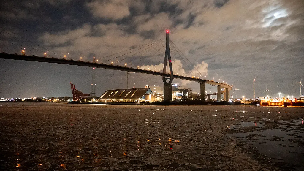 Zahllose Eisschollen bedecken die Elbe im Hamburger Hafen. Die Fähren der Hadag haben Probleme beim Anlegen. Und es rumpelt während der Fahrt.