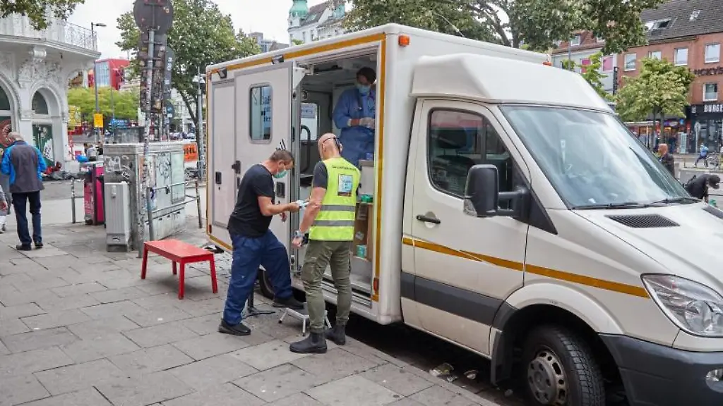 Hamburg (dpa/lno) - Offene Wunden versorgen, Medikamente für chronische Krankheiten verteilen, zu hohen Blutdruck behandeln - das Hamburger Gesundheitsmobil ist seit 2018 in der Hansestadt unterwegs, um Menschen ohne Krankenkassenkarte medizinisch zu versorgen. Bislang wurden von dem rund 23-köpfigen Team aus Ärzten aller Fachrichtungen vor allem Obdachlose, Prostituierte, Flüchtlinge und Drogenabhängige behandelt, wie der medizinische Koordinator des Gesundheitsmobils, Ronald Kelm, der Deutschen Presse-Agentur in Hamburg sagte. Seit einigen Monaten jedoch verändere sich die Klientel.