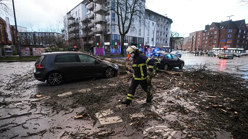 Hamburg (dpa/lno) - Ein Baum ist im Hamburger Stadtteil Bahrenfeld im Sturm auf zwei parkende Autos gestürzt und hat ein Kind leicht verletzt. Das Kind sei mit dem Fahrrad unterwegs gewesen, als der Baum umgefallen sei, sagte ein Polizeisprecher am Freitag. Der Bahrenfelder Steindamm sei auf Höhe Stresemannstraße gesperrt, Baum und Äste bedeckten eine Fläche von rund 200 Quadratmetern.