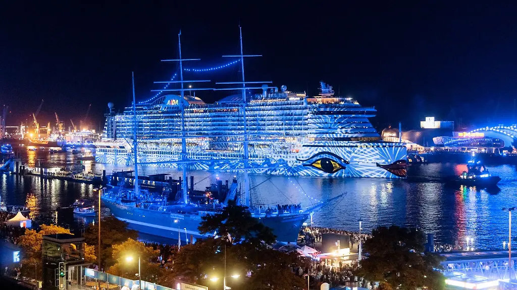 Hamburg (dpa/lno) - Mit einer Lichtshow mit Drohnen und Musik haben die Hamburg Cruise Days am Samstagabend ihren Höhepunkt gefeiert. Vor dem Hintergrund eines blau erleuchteten Hafens trafen sich die beiden Kreuzfahrtschiffe "Aida Prima" und "MSC Magnifica" zwischen Elbphilharmonie und Landungsbrücken und wurden künstlerisch in Szene gesetzt. Bis zum Sonntag erwarten die Veranstalter mehr als 120.000 Besucher bei dem dreitägigen Kreuzfahrt-Festival im Hamburger Hafen.