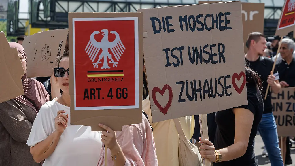 An der Moschee wurde der Zug von zwei kleineren Gegendemonstrationen erwartet. Die Polizei trennte die Gruppen und sprach von einem friedlichen Verlauf.