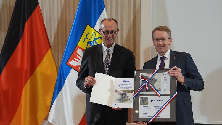 Husum (dpa/lno) - Bundeskanzler Friedrich Merz ist nun Pate eines Seehundes in der Seehundstation Friedrichskoog an der Nordsee. Schleswig-Holsteins Ministerpräsident Daniel Günther (beide CDU) überreichte dem Kanzler am Nachmittag bei einem Besuch in Husum eine entsprechende Urkunde. Auf die Frage von Merz, was er dafür tun müsse, sagte Günther: "Lieb sein." Und ab und an für Futter sorgen.