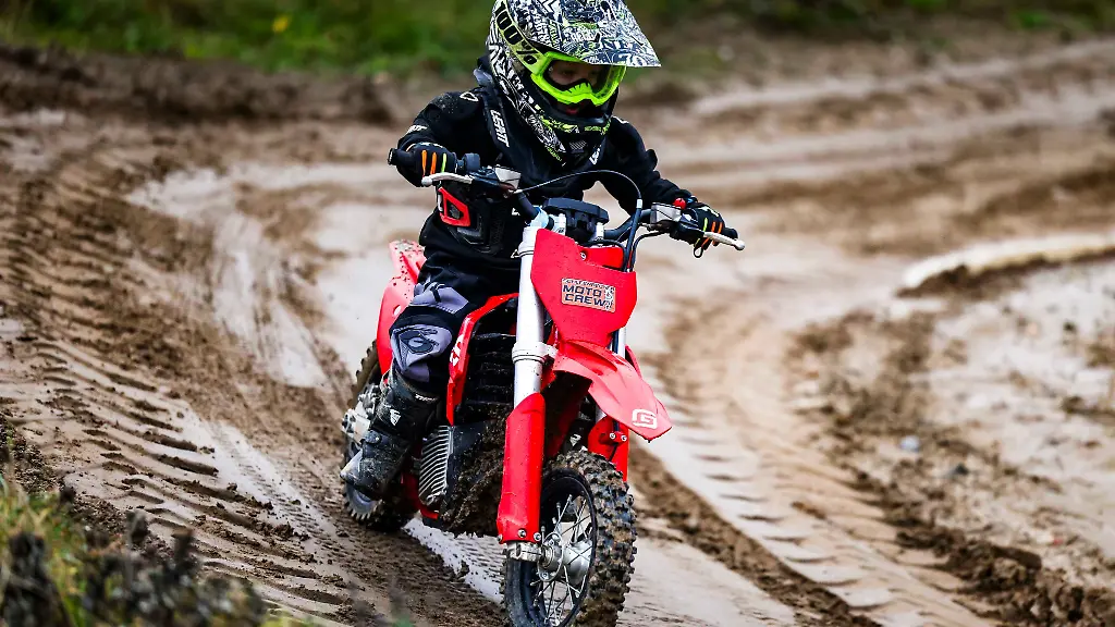 Seitdem ist die Familie regelmäßig auf der Motocrossstrecke des MSC Nordmark Kiel in Reesdorf bei Bordesholm zu finden. Dort toben sich der 15-jährige Thilo und sein kleiner Bruder Mio aus. Es geht durch Matsch, Sand, über harten Boden, bergauf und bergab harten Sand. Immer wieder. Der Dreijährige ist dabei auf einem E-Motorrad unterwegs.