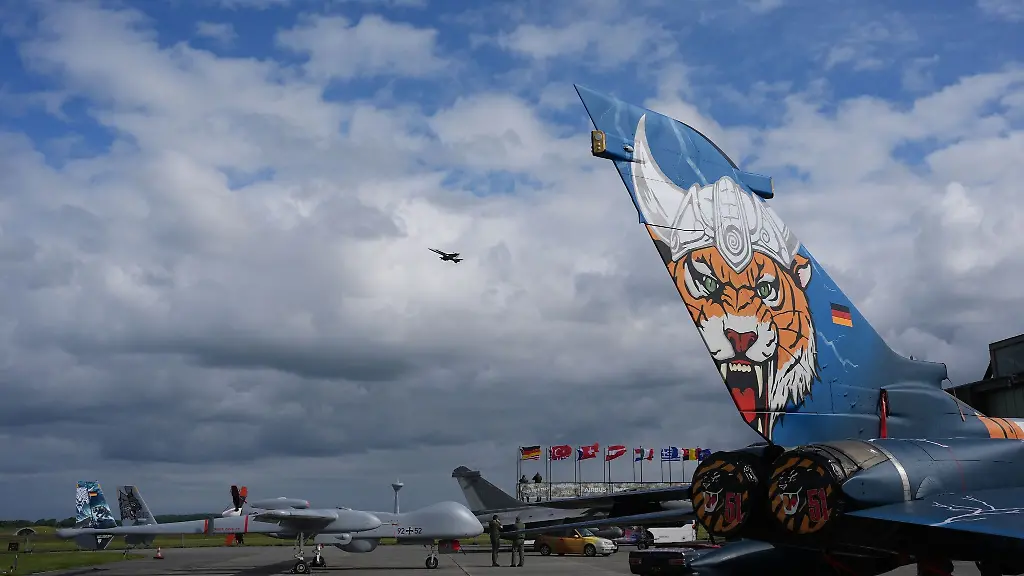 Seit vergangenem Monat trainieren Soldaten aus elf Nato-Staaten sowie aus der Schweiz und Österreich gemeinsam im Luftraum über Schleswig-Holstein. Beim Tag der Ehrengäste waren am Dienstag auch der Staatssekretär im Bundesverteidigungsministerium Nils Hilmer (SPD) sowie Schleswig-Holsteins Landtagspräsidentin Kristina Herbst (CDU) vor Ort.
