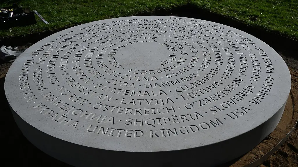 Die neue Platte wurde am Eingang zu der Gedenkanlage aus dem Jahr 1965 aufgestellt. Auf ihr werden in einer Spirale die Namen von 70 heute bestehenden Staaten genannt. Die Länder ergaben sich nach Angaben der Gedenkstätten-Stiftung durch eine neue Auswertung zu den Geburtsorten von rund 23.000 Gefangenen.