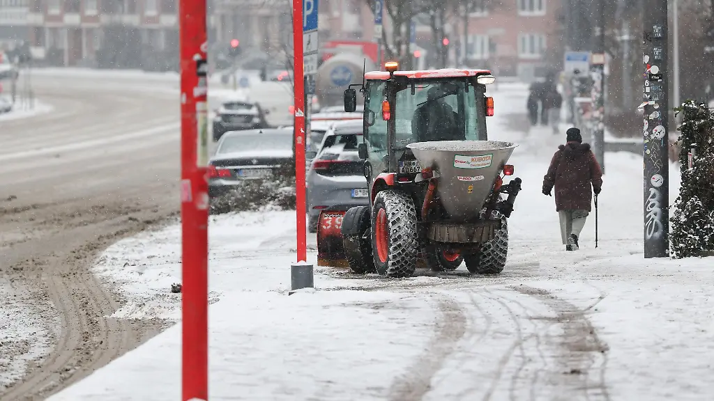 Hamburg (dpa/lno) - Das Winterwetter in Hamburg fordert den Räumdienst der Stadt erneut heraus. Wegen des Schneefalls sei der Winterdienst der Stadtreinigung seit 4.00 Uhr wieder im Volleinsatz, teilte die Stadtreinigung mit. Das bedeute, dass 728 Einsatzkräfte mit mehr als 360 Fahrzeugen unterwegs seien, um unter anderem wichtige Hauptverkehrsstraßen und Strecken mit Buslinienverkehr zu streuen und räumen. Es sei der 16. Großeinsatz in dieser Saison.