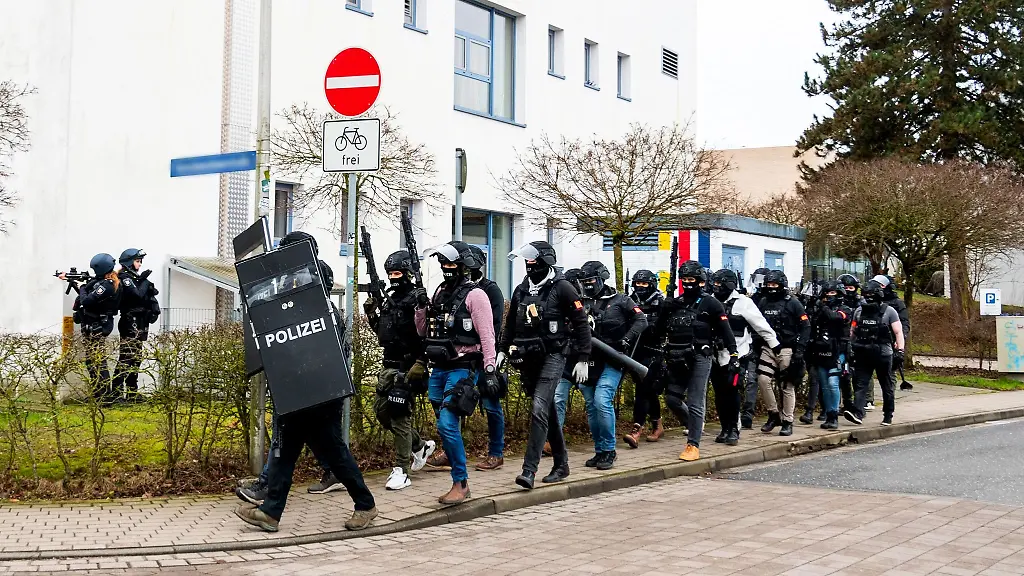 Nach dem Anruf begann ein Großeinsatz der Polizei. Einsatzkräfte sperrten das Gelände ab, Spezialkräfte durchsuchten mehrere Stunden lang die Schule. "Hierzu wurde aufgrund der anzunehmenden Ernsthaftigkeit einer Gefahrenlage das Anlegen wirksamer Schutzausrüstung für die eingesetzten Polizeibeamten angeordnet", berichtete die Polizei.