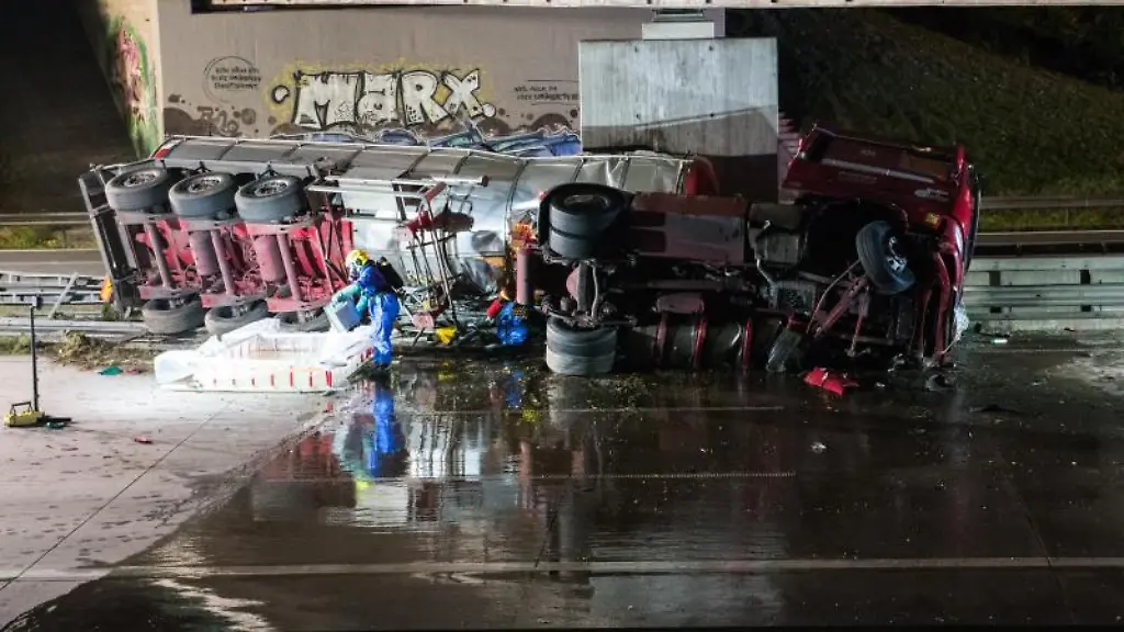 Hamburg & Schleswig-HolsteinTanklaster umgekippt: Gefahrgut läuft aus, A1 voll gesperrt