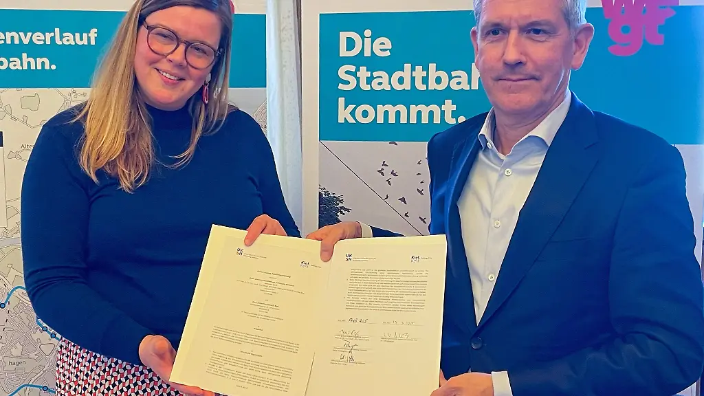 Kiel (dpa/lno) - Das Universitätsklinikum Schleswig-Holstein in Kiel soll an die geplante Stadtbahn der Landeshauptstadt angeschlossen werden. Eine entsprechende Absichtserklärung, um die Möglichkeiten der Anbindung zu prüfen, wurde vom Vorstandsvorsitzenden des UKSH, Jens Scholz, und der Verkehrsdezernentin der Stadt Kiel, Alke Voß, unterzeichnet.