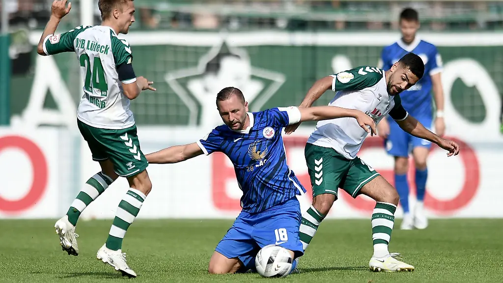 Kiel (dpa/lno) - Die Teilnahme des Fußball-Regionalligisten VfB Lübeck am diesjährigen DFB-Pokal hat für andere Vereine Schleswig-Holsteins positive Folgen. Die Lübecker nahmen für ihr Spiel in der ersten Runde gegen den Zweitligisten FC Hansa Rostock (1:0) 209.247 Euro ein. Gemäß den Pokalbestimmungen des Landesverbandes muss der Verein einen Solidarbeitrag von 25 Prozent der Erstrundenprämie abführen. Die 52 311,75 Euro teilen sich jene sieben Vereine des Landes, die mindestens das Viertelfinale des Landespokals erreicht hatten.