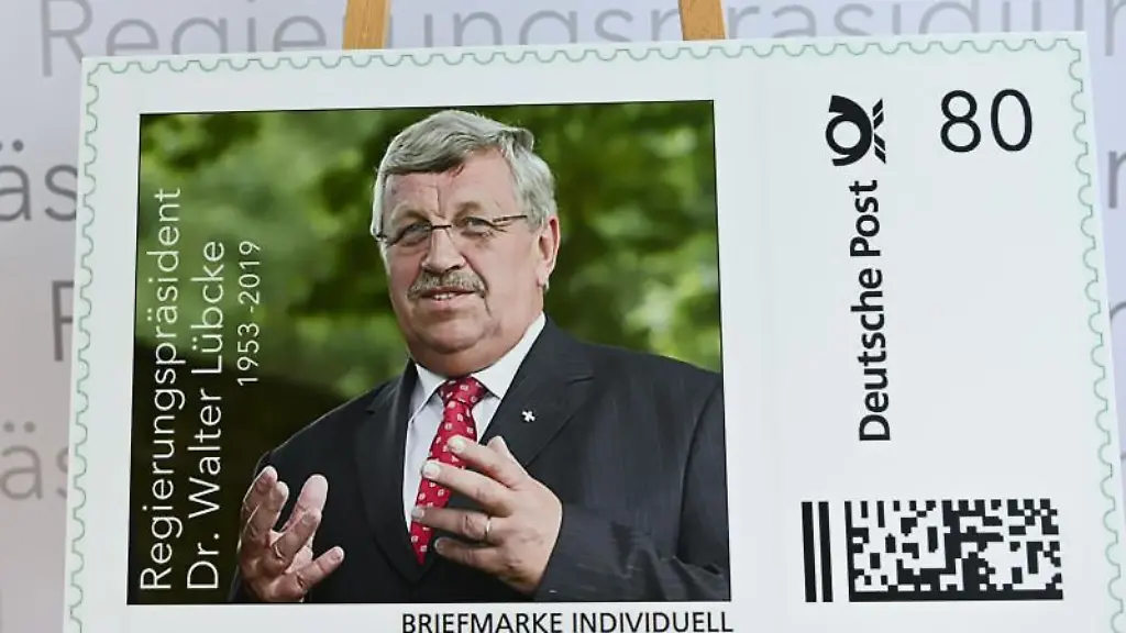 Kassel (dpa/lhe) - Der ermordete Kasseler Regierungspräsident Walter Lübcke ist mit einer Sonderbriefmarke geehrt worden. Mit den Erlösen soll ein Kunstwerk finanziert werden, das an Lübcke, aber auch die Tat und deren mutmaßlich rechtsterroristischen Hintergrund erinnern soll, wie das Regierungspräsidium Kassel am Freitag mitteilte. Auf der Sonderbriefmarke ist Lübcke abgebildet, wie er mit seinen Händen gestikuliert.