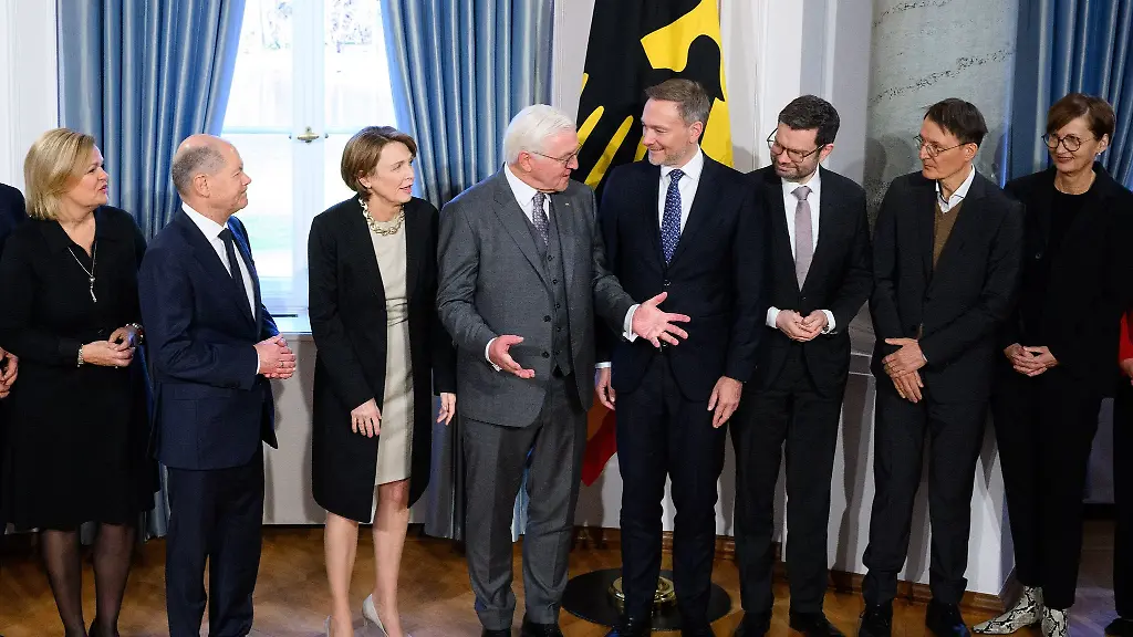 Steinmeier hatte rund 150 Vertreter des öffentlichen Lebens und 60 ehrenamtlich engagierte Bürger zum Neujahrsempfang eingeladen. Die Liste prominenter Gäste reichte von den Präsidentinnen und Präsidenten von Bundestag, Bundesrat und Bundesverfassungsgericht - Bärbel Bas (SPD), Manuela Schwesig (SPD) und Stephan Harbarth - über Bundeswehr-Generalinspekteur Carsten Breuer bis hin zu Bundeskanzler Olaf Scholz (SPD) und seinem Kabinett, das allerdings nicht vollständig erschien.