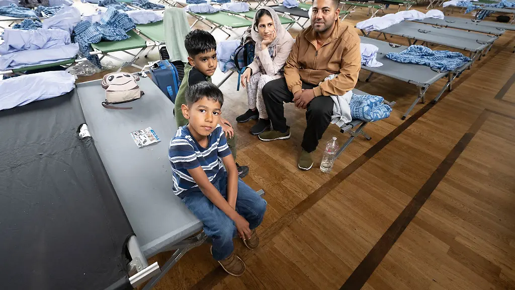 Dazu gehört auch Raja. Geschlafen habe er die ganze Nacht lang nicht, berichtet der Mann. Gemeinsam mit seiner Frau Azra und den beiden kleinen Söhnen Roshaan und Kashaan sitzt der aus Pakistan stammende Mann auf einem Feldbett in der Stadthalle von Babenhausen und weiß nicht, wie es für ihn und seine Familie weitergehen soll.