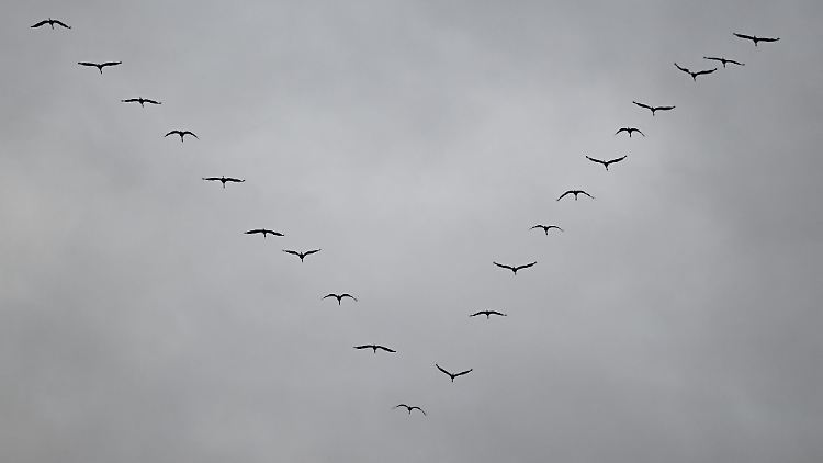Die Vögel brechen zu ihren Winterquartieren im Süden auf. Wer die V-förmigen Züge sieht, kann sie beim Nabu melden.
