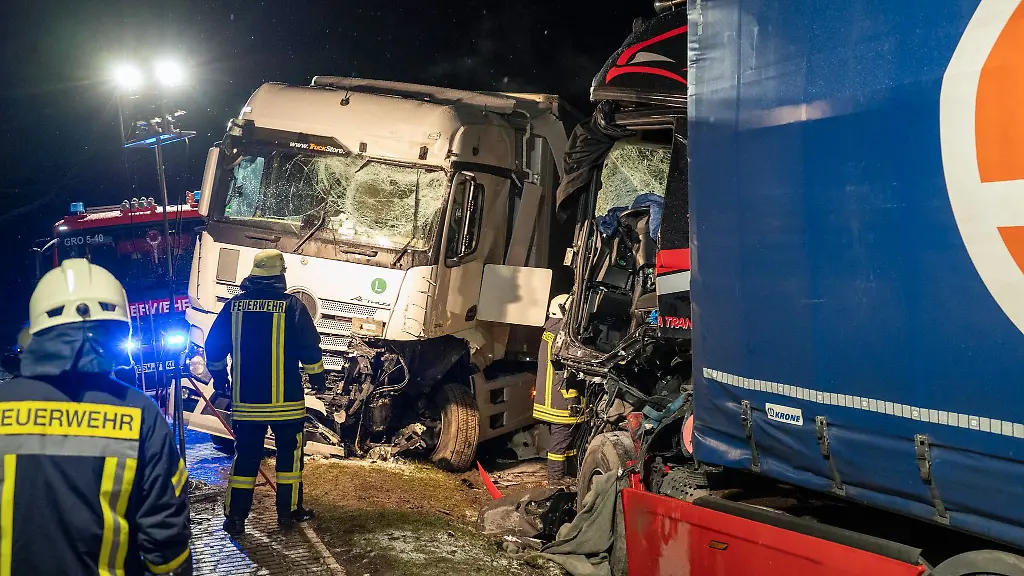 Wegen Glätte konnte ein Lastwagen-Fahrer den Kurs nicht halten und stieß mit einem anderen schweren Lkw zusammen.