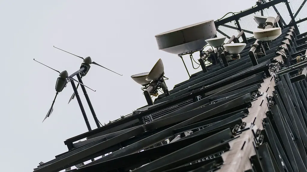Am Mobilfunkmast in Bad Camberg sind auf einem Stahlgitter in einer Höhe von 40 Metern acht Windturbinen montiert. Mit dem Pilotprojekt an deutschlandweit 52 Funkmasten will der Betreiber Vantage Towers nach eigenen Angaben den Energieverbrauch verringern und Erfahrungen beim Betrieb sammeln.